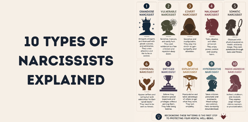 Let’s explore ten types of narcissists and how they exploit their dominant traits to achieve their goals.